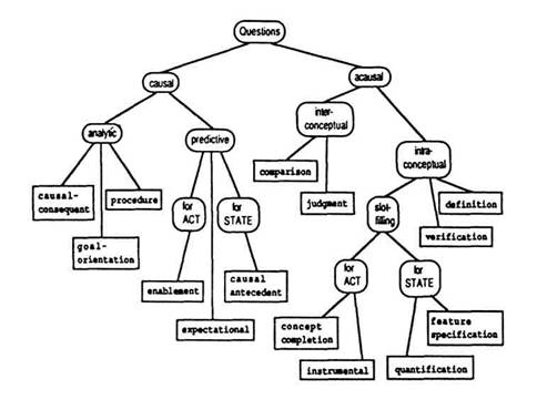 LEHNERT192 unterschied 1978 13 Kategorien von Fragen bei der Entwicklung des Frage-Antwortsystems QUALM.193 Dieses System wurde von HUGHES überarbeitet, so daß es auch für eine